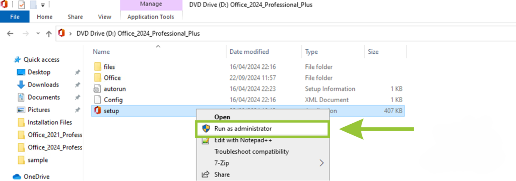To begin the installation process, right-click on “Setup” and select “Run as administrator“.