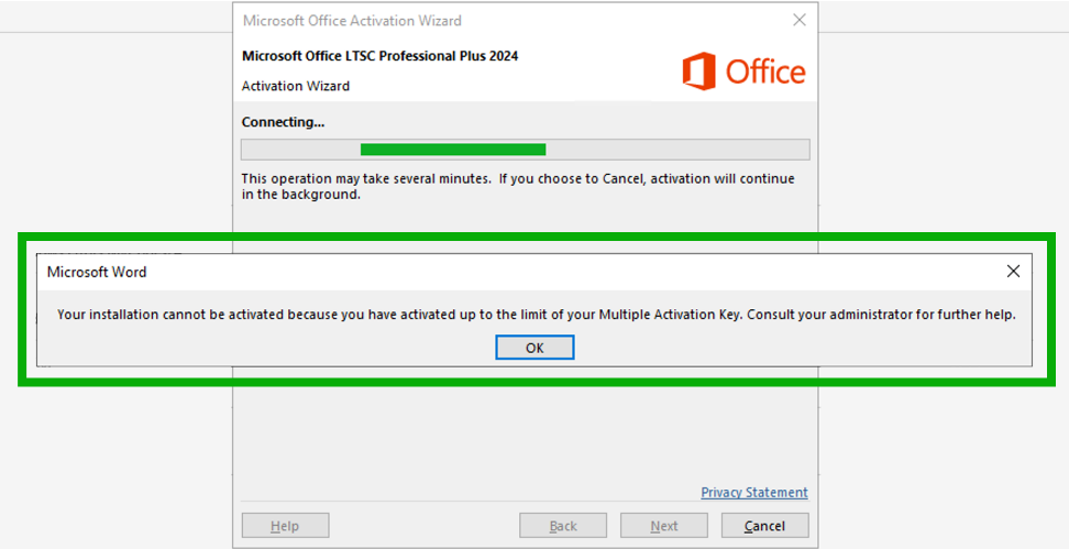 When installing MS Office 2024, you receive a 30-day trial activation period. After this period, you must activate it using a product key. If you forget to activate within 30 days, you’ll see a ‘product activation failed’ message. Once activated with your product key, you have lifetime usage.