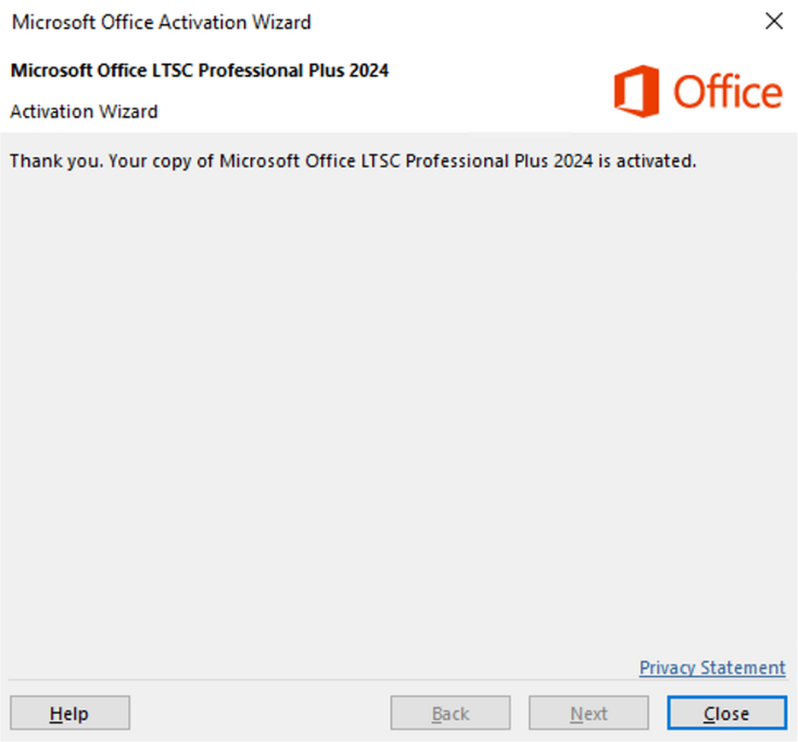 Your Office 2024 package will be activated. Please restart your device, open an Excel file, and verify the activation.